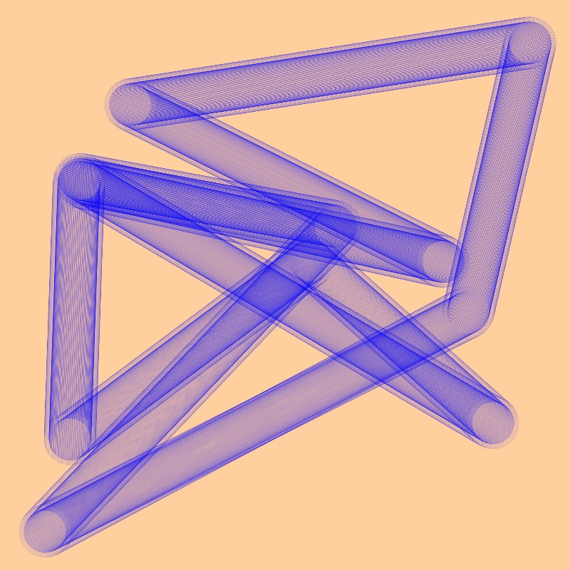 I derived this work from generative visual experiments I created way back in 2012. I was trying to make a Spirograph, also known as a Hypotrochoid if you're a mathy. I like the results of this broken code tangent more than the working version, and I revisited it from time to time. It's always special to pull a project out of the dustbin and make it dance again. Enjoy!