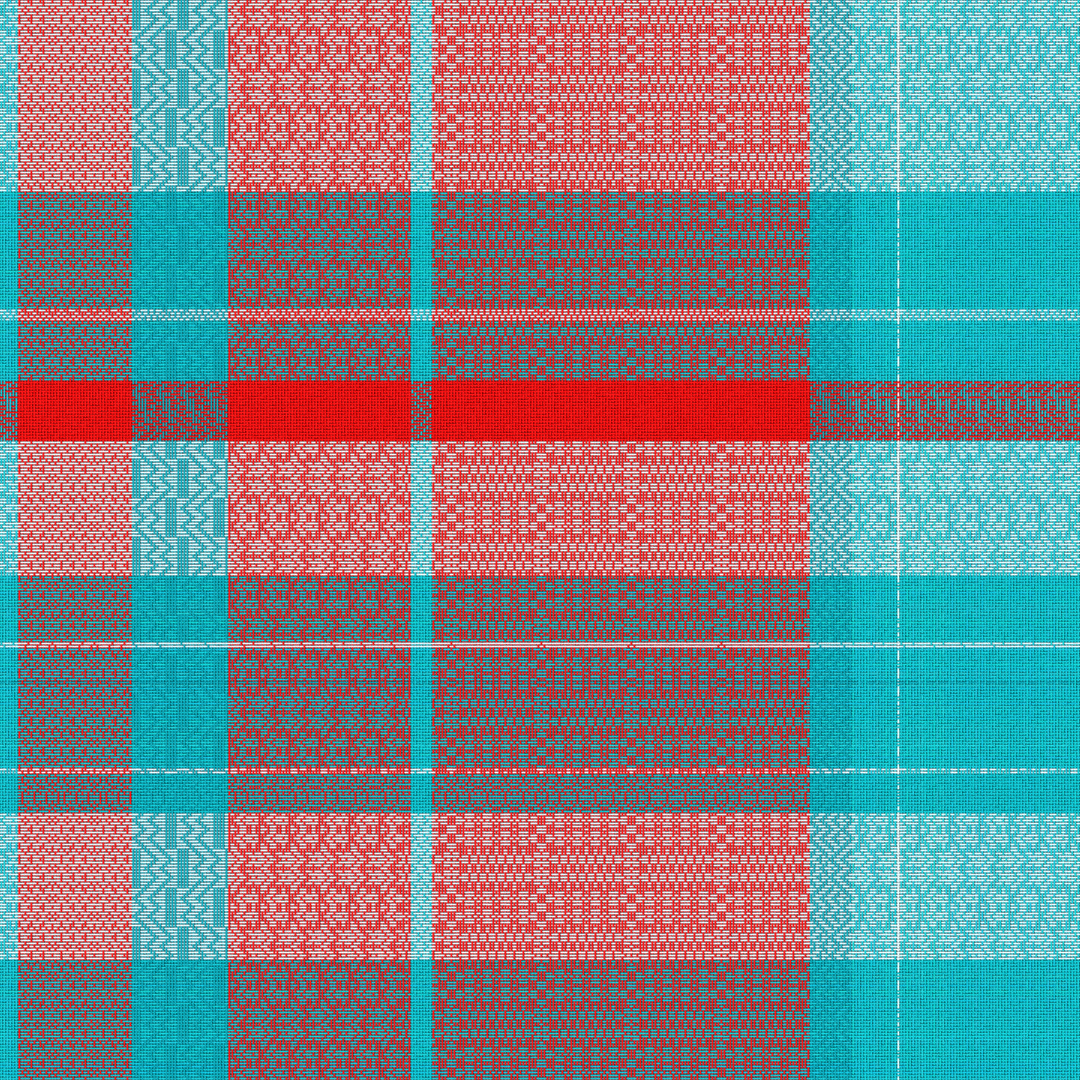 The algorithm called telar.js uses the hash to select some colors from preselected patterns and uses the input series to generate a base model with a starting pattern. After that, multiple iterations alter the model appending new tie-ups and modifying the threading or treadling and colors while keeping the design consistent. A resulting matrix containing each intersection then gets drawn on the screen resulting in a high-definition image the viewer can zoom in and see in detail.