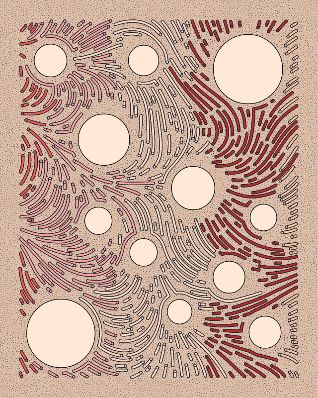 Created with Javascript and p5js. Each bar steers clear of the other bars and balls. This is an experiment in which I admittedly invested a little too much time. The numerous variables, factors, and variants ensure that each mint has a distinct outcome.