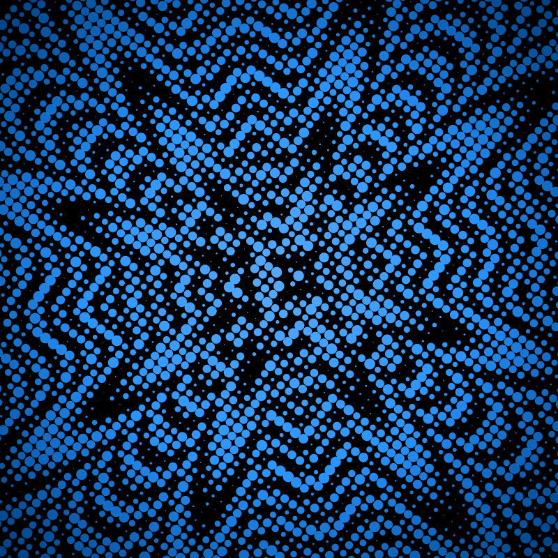 Stellae iterates over a grid of circles, altering their size according to a periodic formula.