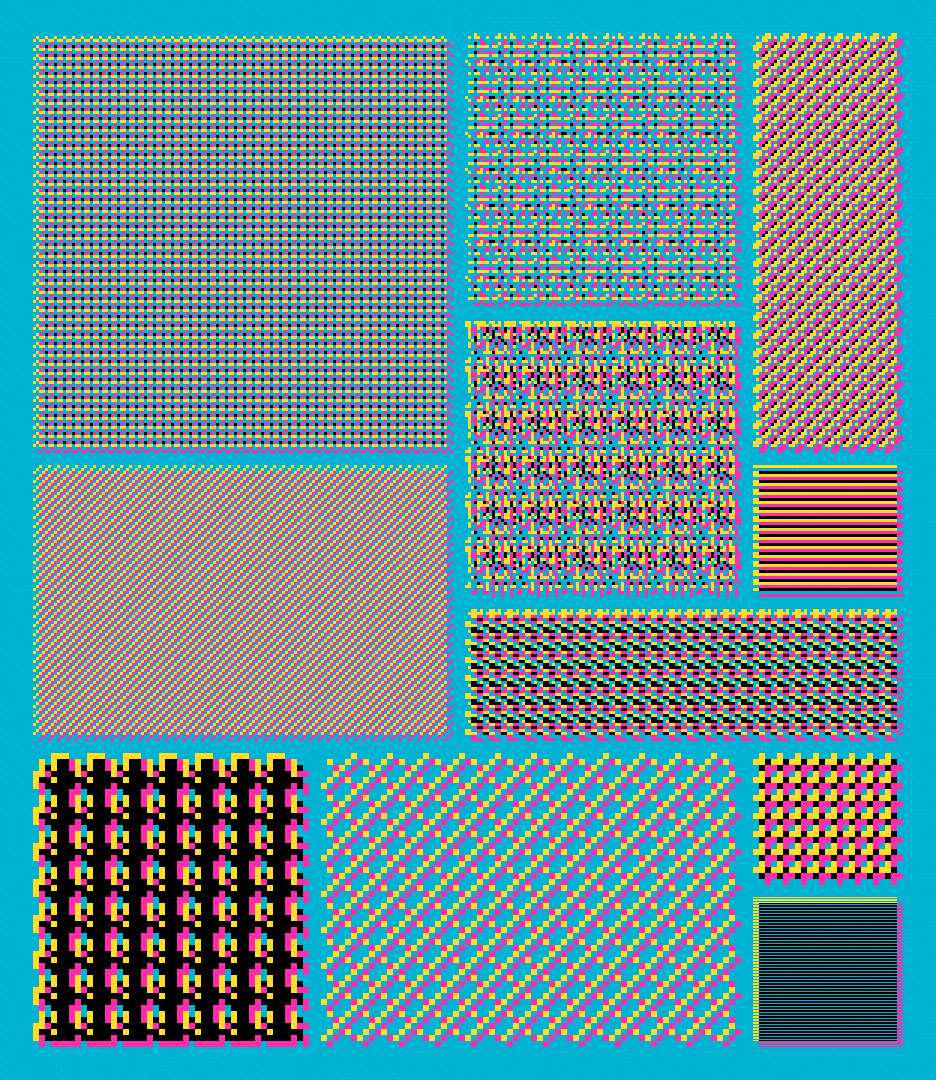 2-9 out of 12 symbols creating 2-42 random patterns in 29 different colour palettes