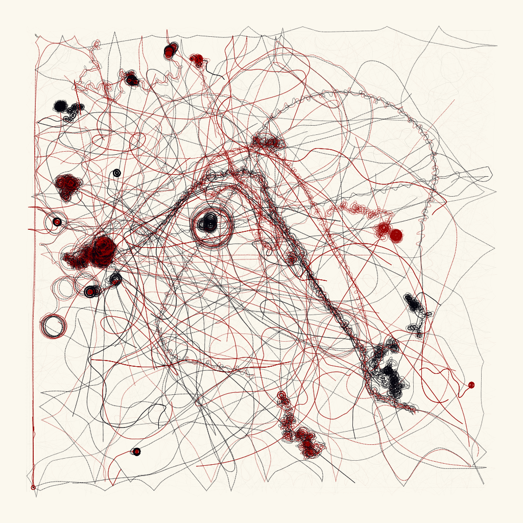 We have a population of agents programmed to keep their direction and speed of movement as long as they are not colliding with others. When an agent gets too close to other agent, tries to avoid it. When they get to the margin of the canvas they bounce. There are times when, pushed by crowds, an agent leaves the canvas. Then, it dies.