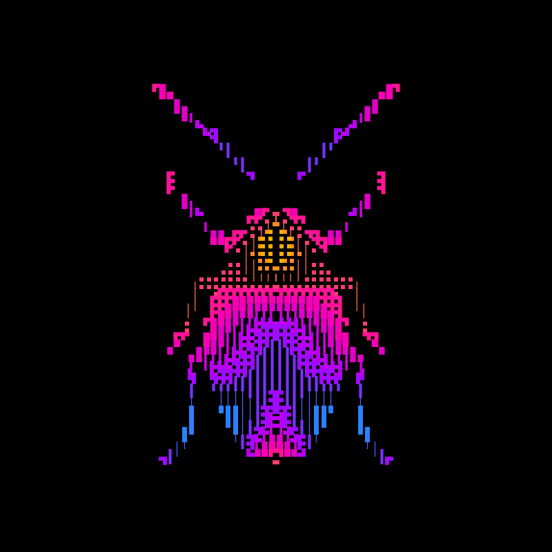 each bug is generated in real-time by neural network randomly walking in 256 dimensional vector space