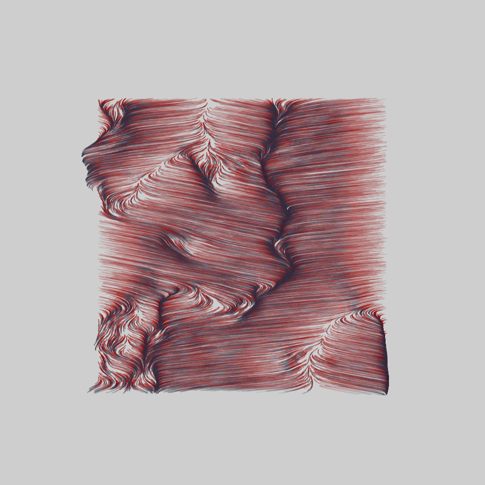 An abstract expression of topography. The soft canvas is slowly overwhelmed with generative brush strokes distracting from, and creating an organic depiction.