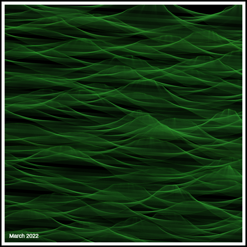 128 generative waves inspired by nature, a bubbling ocean, a boiling lava, the wind over a calm lake.