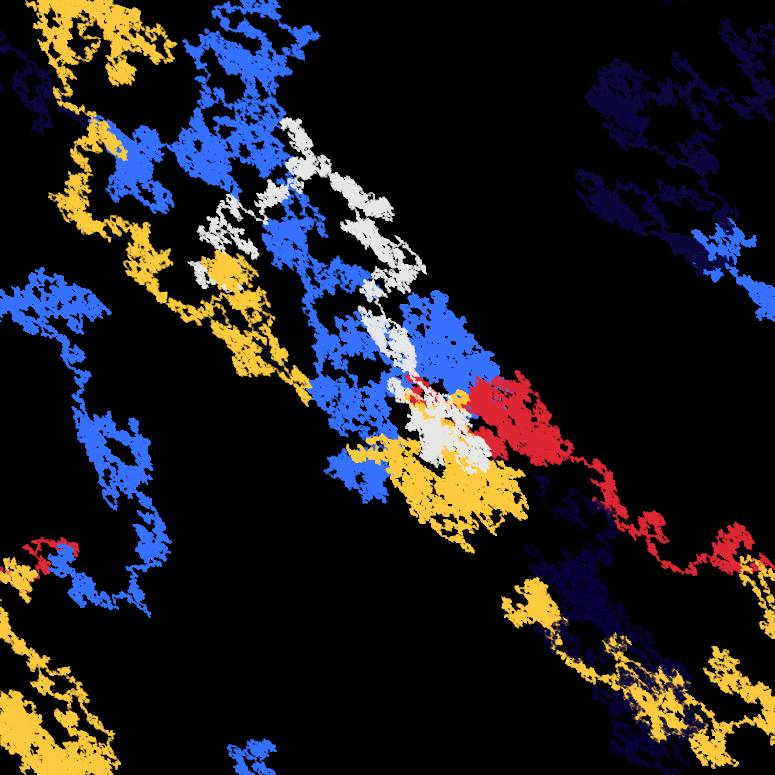 The representation of the path of a walker that ran for a lot of iterations. Each one will be unique and have one of 5 color palettes. Hope you enjoy!