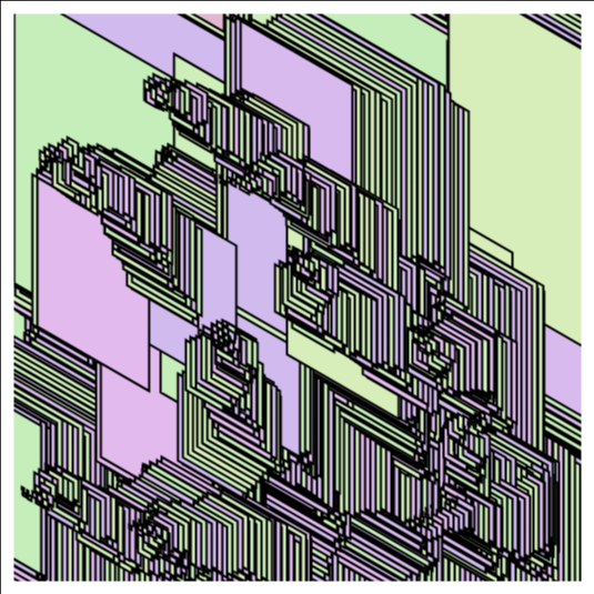 Animated overlays of complementary color rectangles create a unique pattern that is incomparable to almost anything. It seems to me that this will remind everyone of something different (for example, long corridors for me).