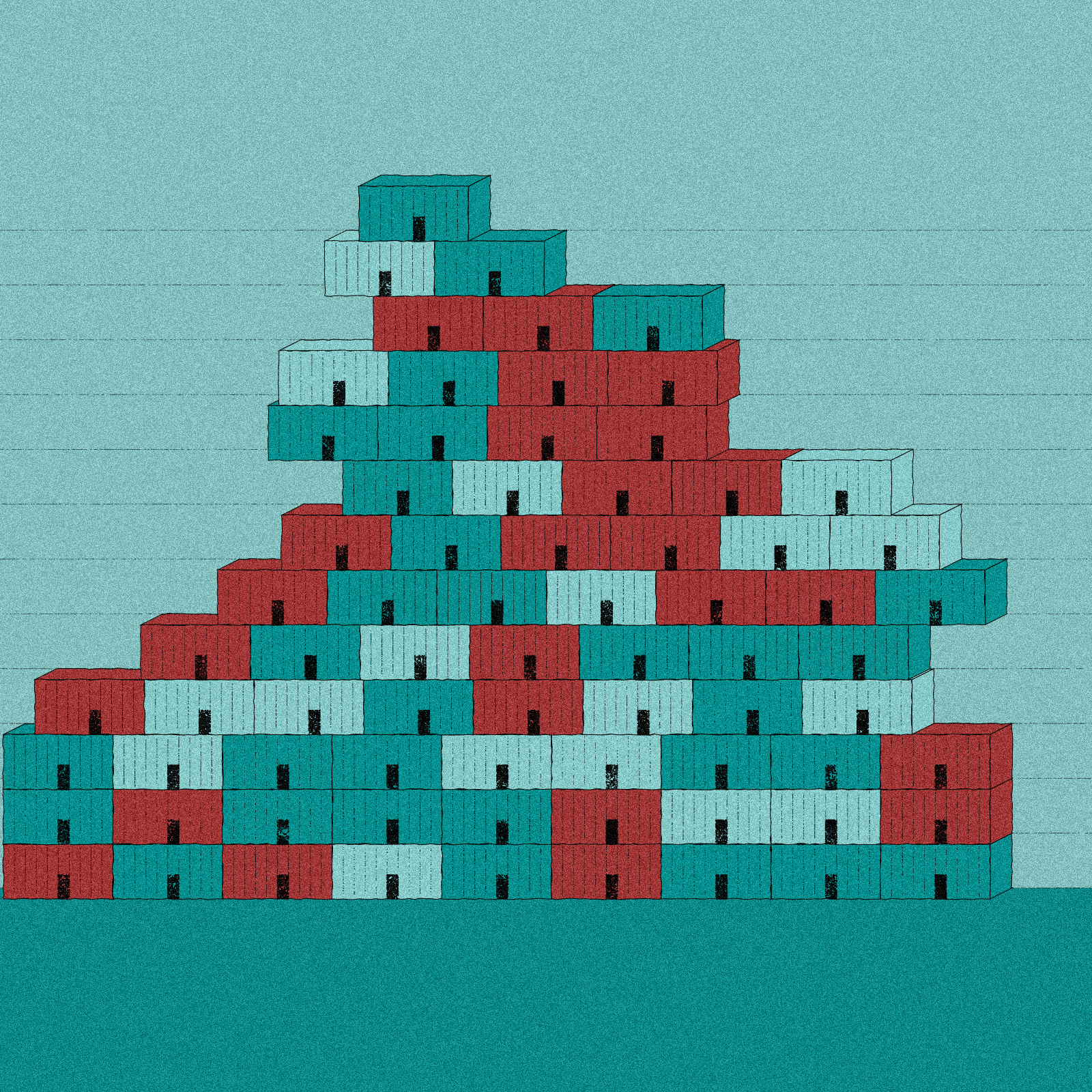 Container City is created with p5js. Color palettes are created with random hue and vanilla javascript.