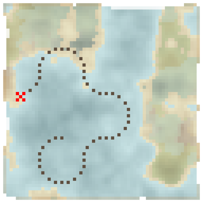A series of randomly generated treasure maps. Some are newer, some are older, some don't even contain a path to a treasure. But they are all piratey.