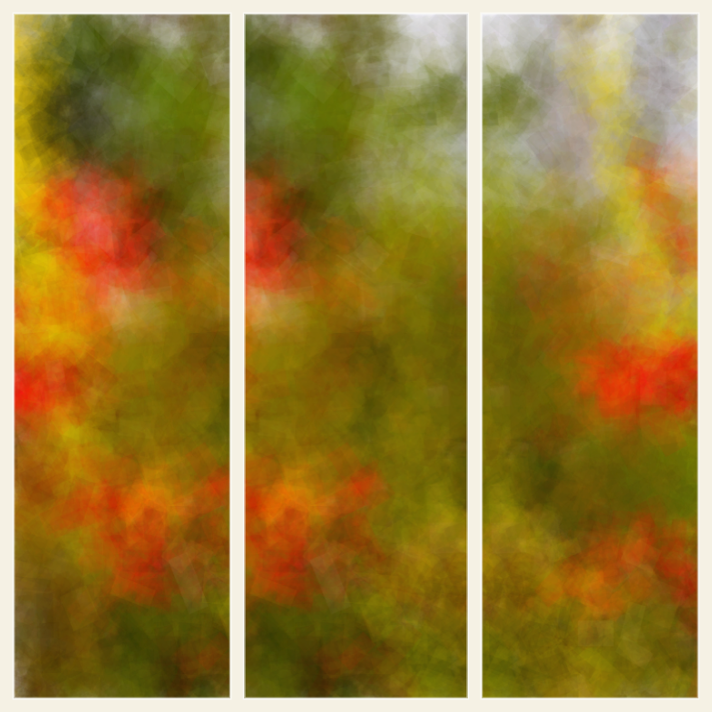 A series of generative triptych abstract paintings. A generative work that samples pixel-level data from my photography of nature.