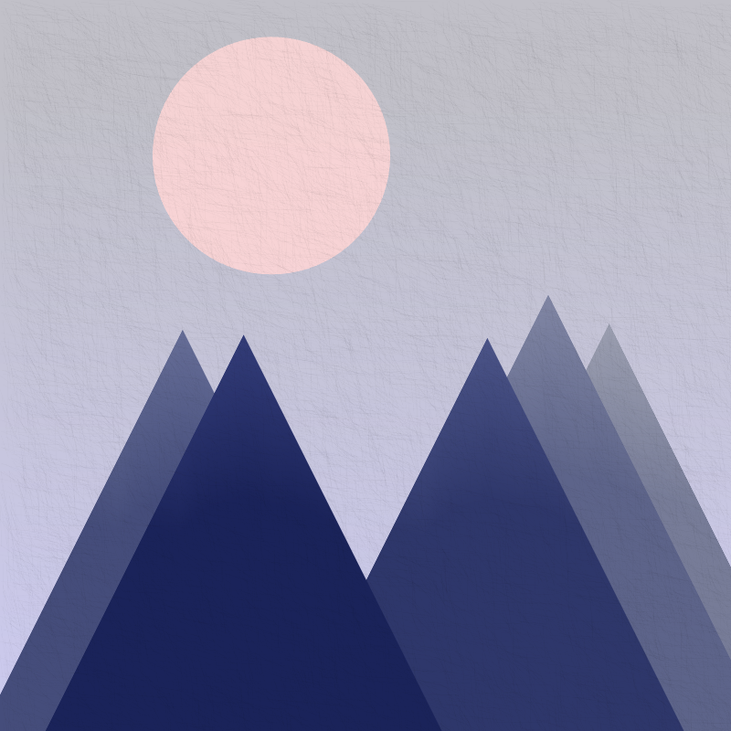 See this beautiful mountain view with sun or moon on contrast sun. It seen in painting style.