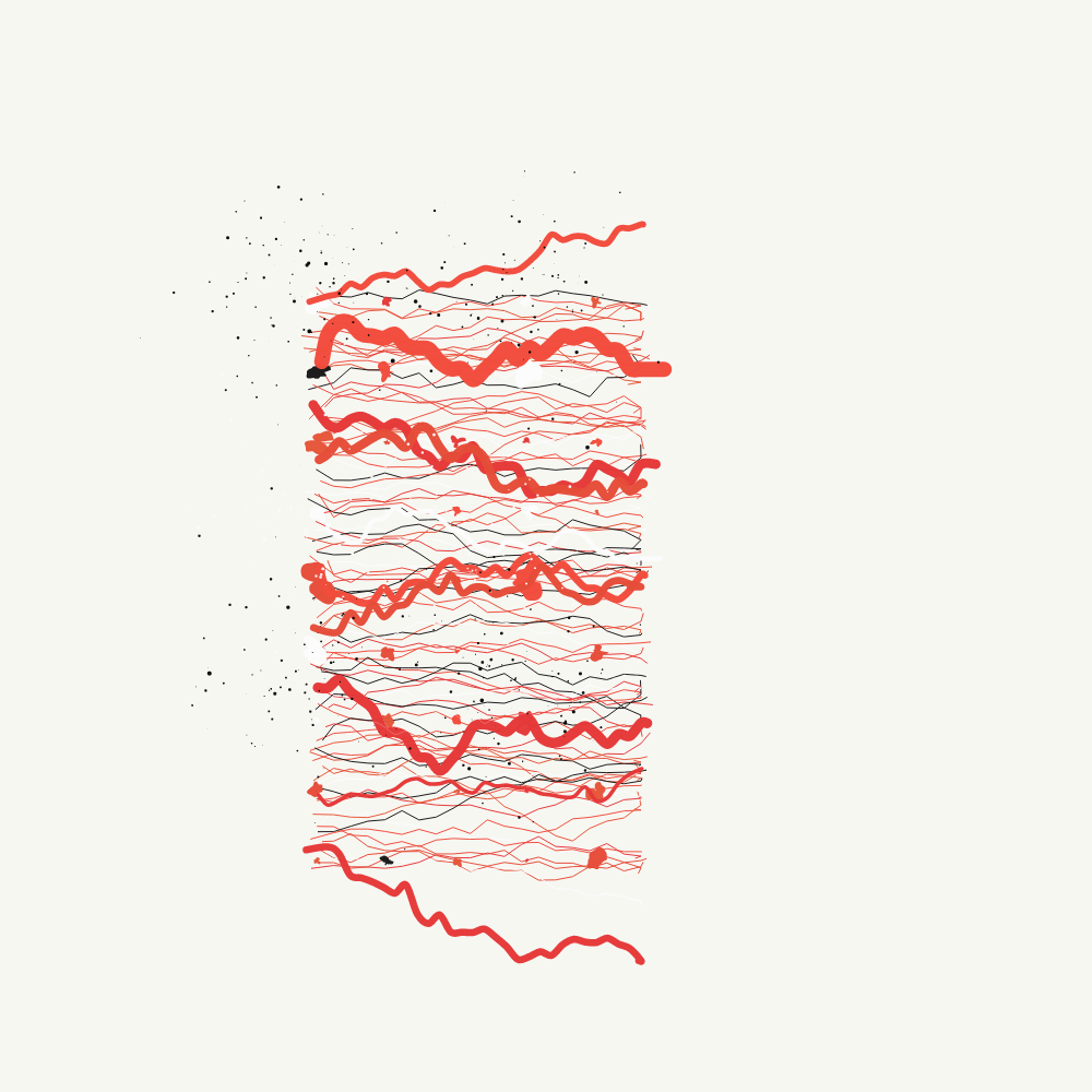 Combinations of gestural strokes, blobs, and splatters fill the canvas in stacks of color. An homage to a certain second-wave American abstract expressionist painter. This is Arin William Marshall's first generative piece.