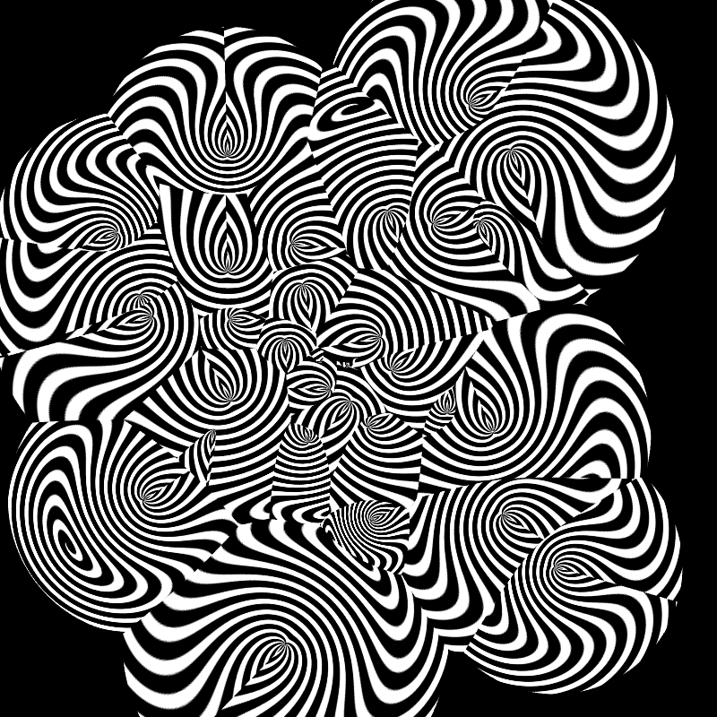 This is a still image work using "p5.js". Objects were made using black and white striped patterns (swirls).