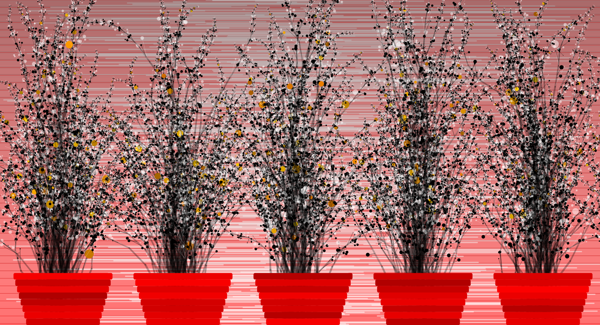 Dressing the background of a waiting room in the metaverse are generative potted plants.
