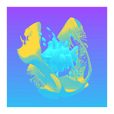 developed in threejs using signed distance fields and custom dithered-rendering technology.