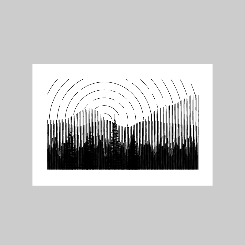 Layered Landscapes explores representing imaginary landscapes through line art designed for output with a pen plotter.
