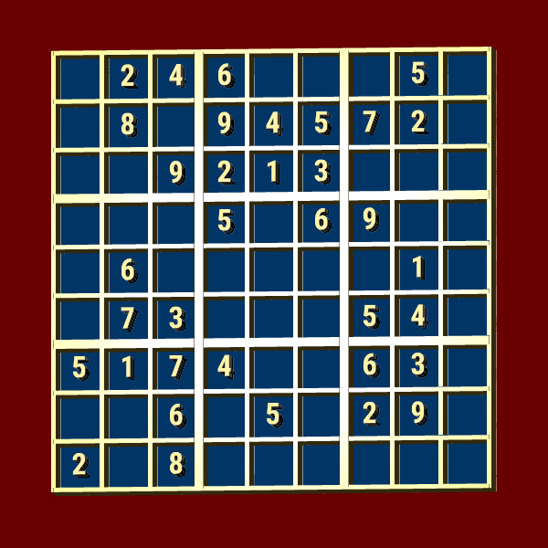 The objective is to fill a 9 × 9 grid with digits so that each column, each row, and each of the nine 3 × 3 subgrids that compose the grid contain all of the digits from 1 to 9.