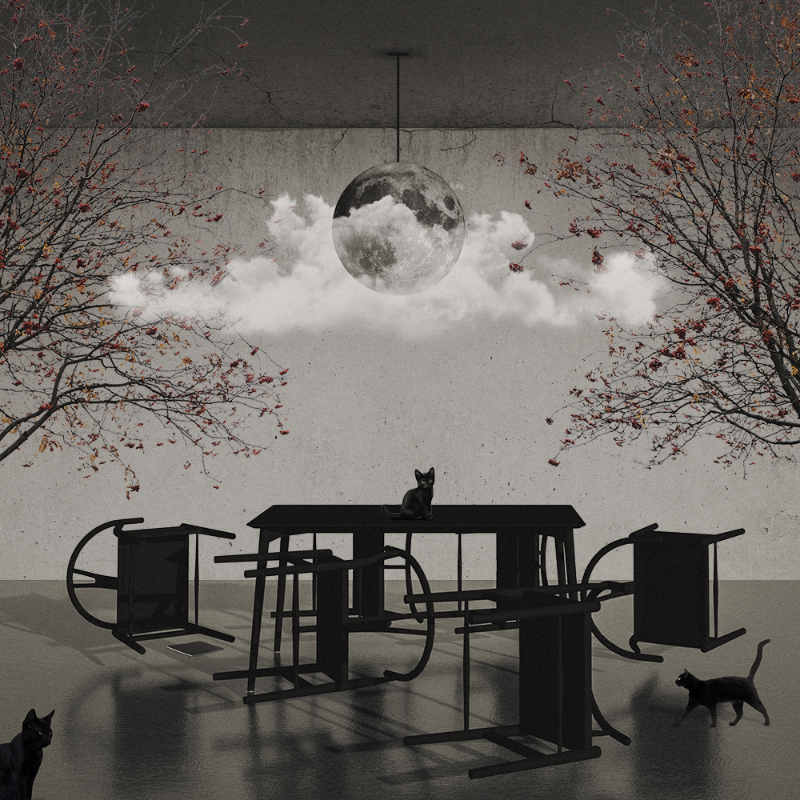 Making dark plans with my cat in a series of generative brutalist scenarios. Each room reveals a different story, a different aftermath.