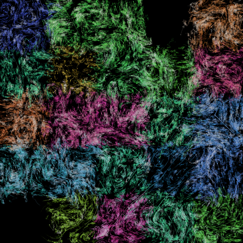 Here you can see different combinations of noises in each cell, which intertwined between each other that gives you abstract picture. There is animation of generating.