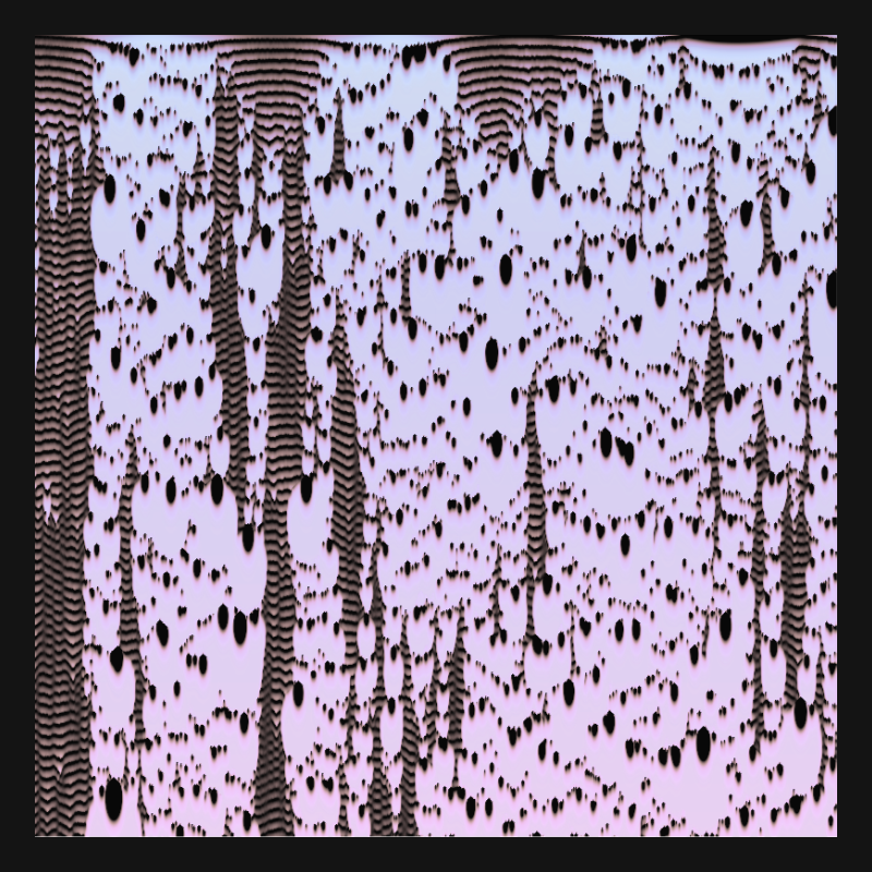 Reaction diffusion systems are mathematical representations of the behaviours of fluids that can be found in nature. A key characteristic of these systems is that the initial parameters are simple but the resulting process can be extremely complex. In LandWaves, pixel colours affect each other, line by line, from top to bottom. Frequencies of multiple oscillating sound waves are turning the brightness values of these pixels into sonic materia.