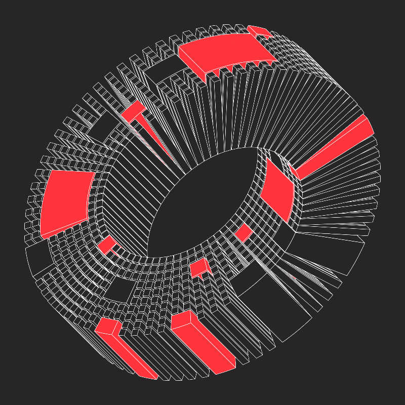 Several "Ex Mobius" collections will be released, each with a different color palette. All outputs in this collection will have the Neon Red color palette.