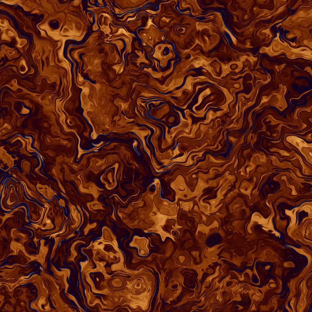 The results resemble natural phenomena as turbulence, fluid mixing, erosion.