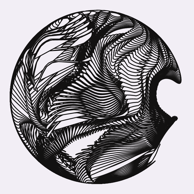 "Tangled" is a generative art project that explores the emergent behaviour of simple shapes moving according to a random flow field. While the final result is always constrained to the shape of a circle, the variation within is endless.