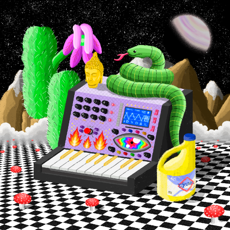 Visually it consists of 16 layers, in which more than 350 elements are combined randomly, generating synthesizers with unique environments and landscapes.