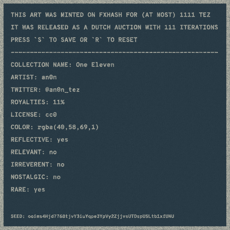 This page has been generated using fx_hash public API https://api.fxhash.xyz/graphql/, to display an overview of a creator's collection from www.fxhash.xyz. The computation of "rarity" is not the official computation and therefore can differ. Dev by @zancan.