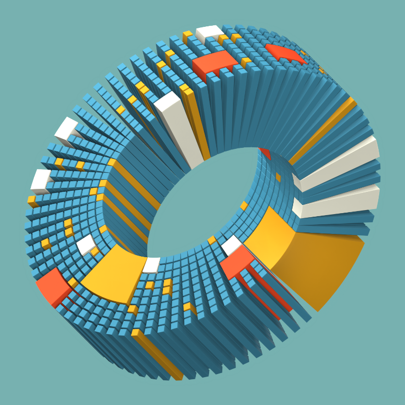 Each output in this collection has the same "mobius" shape, but the number and positions of the colored regions varies.