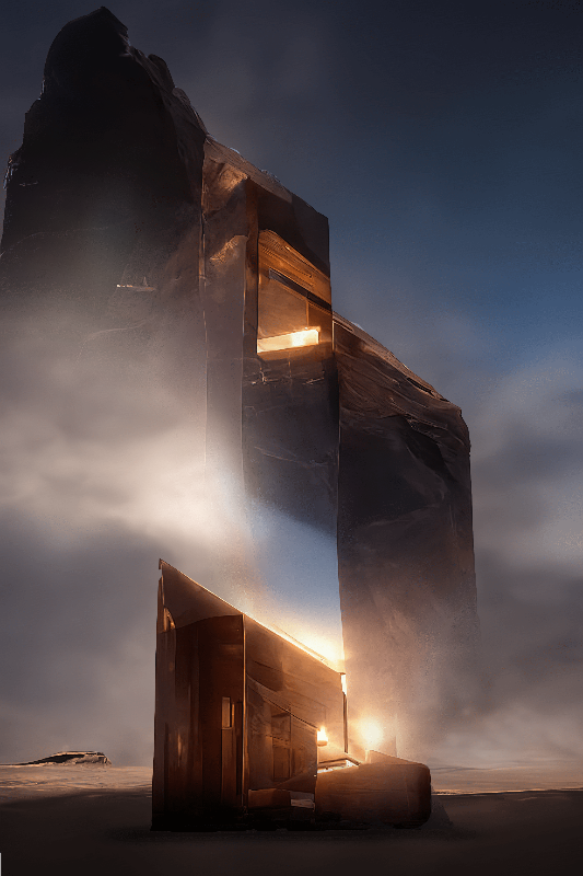"Desert Solitude" is an exploration of my love for crystals, architecture, being one with nature, escaping technology and becoming ok with the idea of being alone. The series was derived using diffusion Ai models and put together in a generative image composition on fx(hash) May 2022. 123 editions were made available.