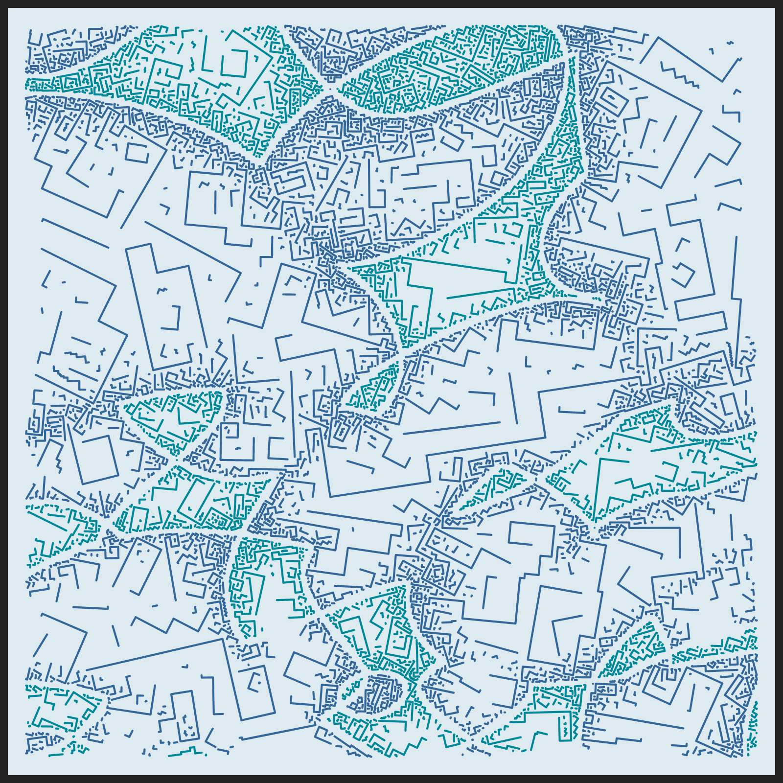 3965 bytes of Javascript produce a generative doodling in resolution independent SVG format. Be sure to check the features for your each piece's custom title! By Piter Pasma (piterpasma.nl)