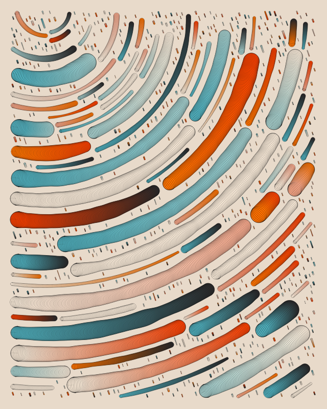 Display resolution scales with window size. Press ’h’ (in live mode) to generate a 6000x7500 hi-res image. This may take a few seconds to generate depending on your hardware. Press ‘d’ to redraw the artwork.