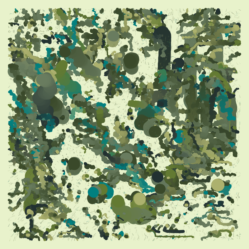 "Chaos Theory (Painting Machine)" extends my interest in translating painterly techniques through generative code. The individual brushstrokes oscillate between texture and gesture, building a layered composition of color and form.