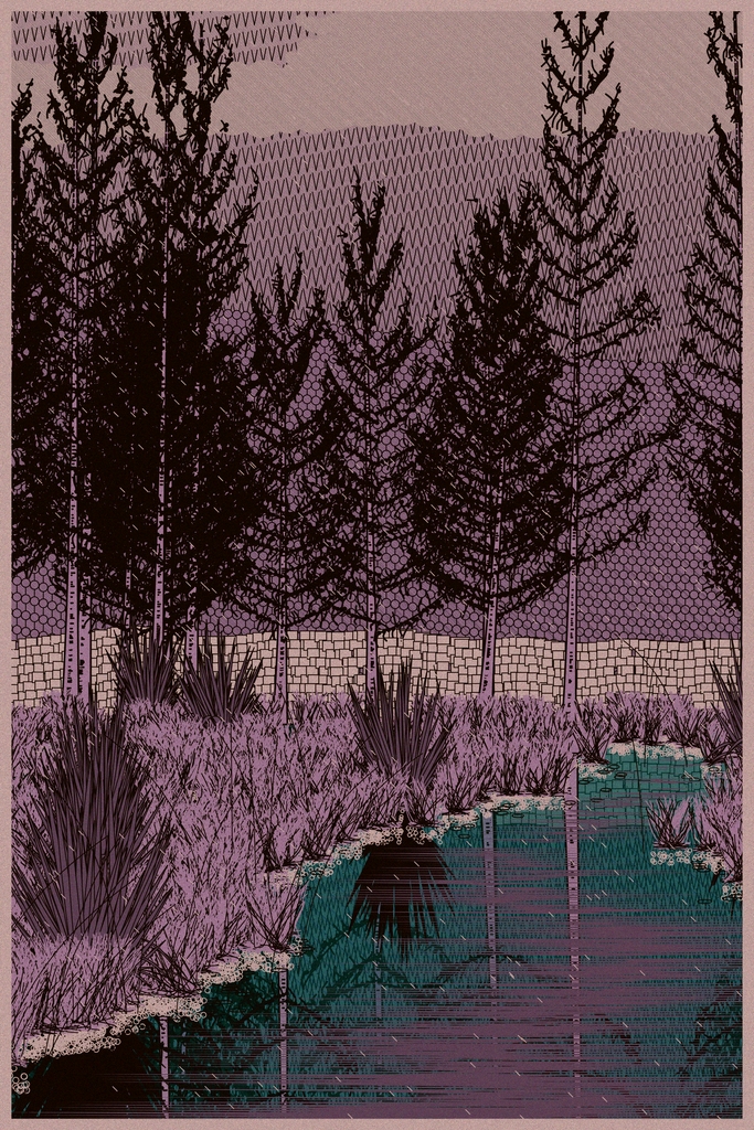 Generative scene of a landscape and river.