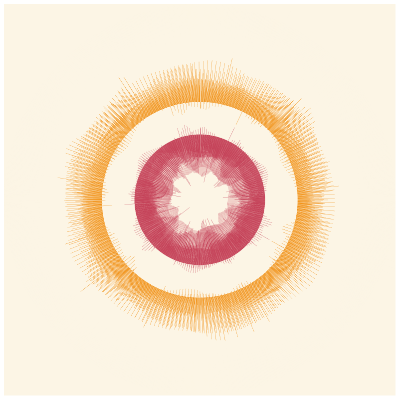 The outputs of this can be kind of hypnotic and can draw you in. It is a bit reminiscent of an audio visualizer. There are 7 different potential palettes, several different trigonometric waves and each one will have a different speed which it moves at. You can press the "Space" bar to toggle the looping of the animation. This project also looks amazing in full screen. Hope you enjoy!