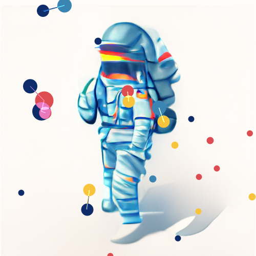 Image made generatively using the VQGAN method derived from text input and dot particle using canvas context that connected to each other when reaching certain threshold.