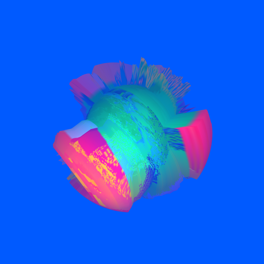 Geography is generated in real-time using clashing and saturated color schemes which are rearranged by corrupted pixel sorting algorithms.