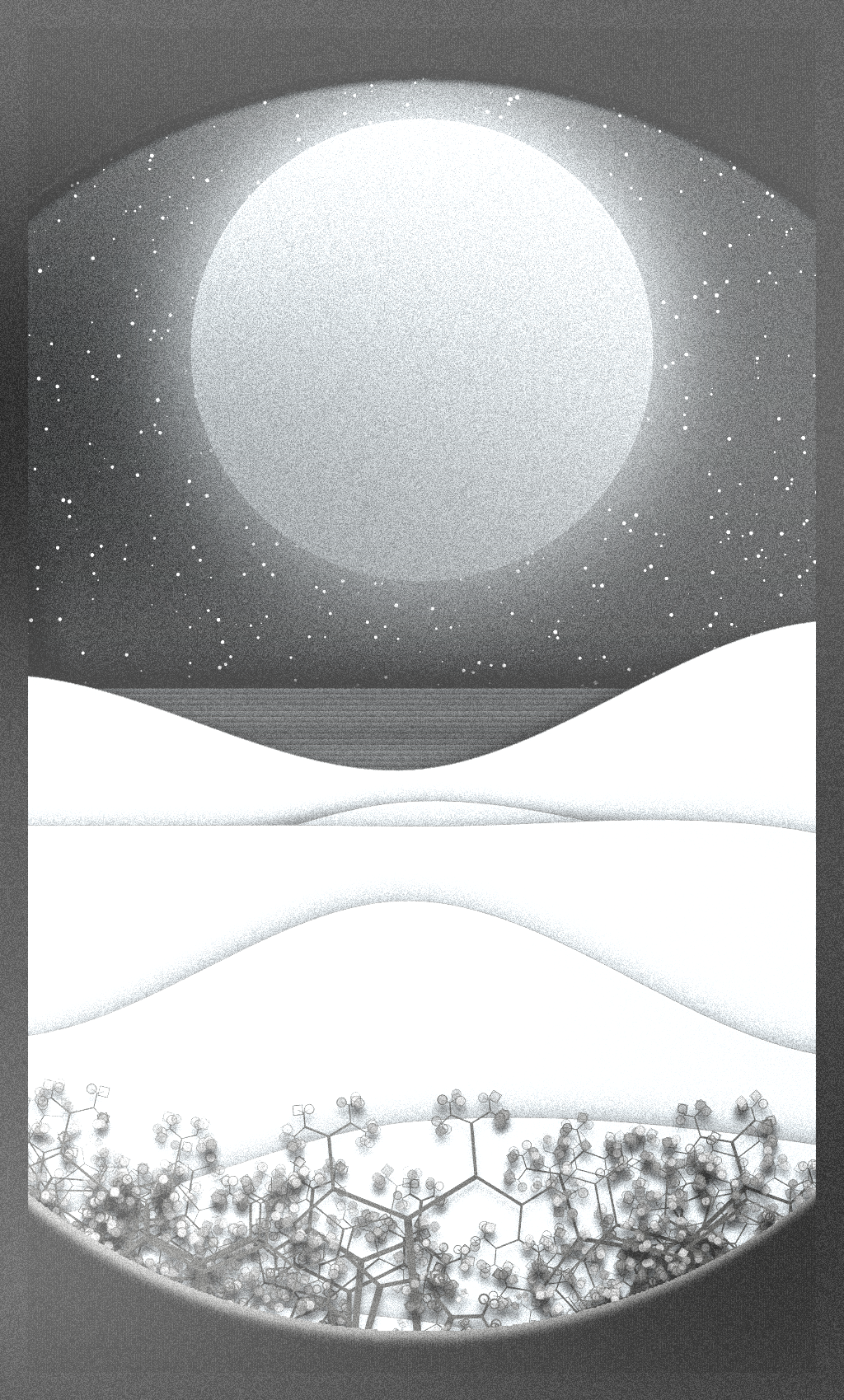 Simple composition representing a view of the sea through a window. Tints from Golden Hour and Night (7 palettes), a black and white palette.
