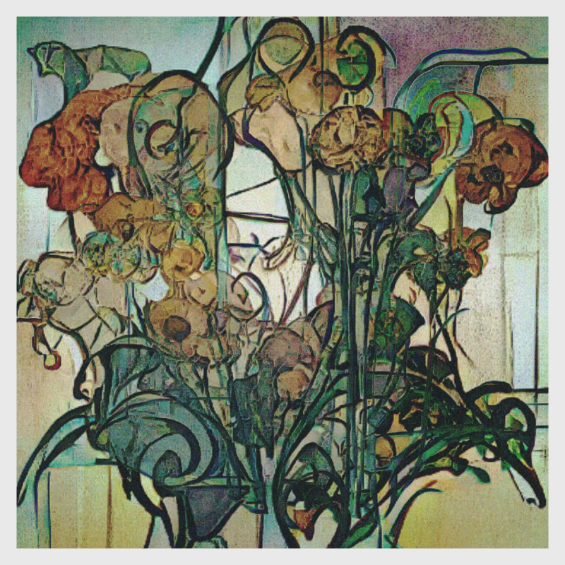 Generative visual composition, hybrid techniques, textures source created with GAN, assist by AI, eclectic, colors, transform in autonomous system, made with code, and modular patch.