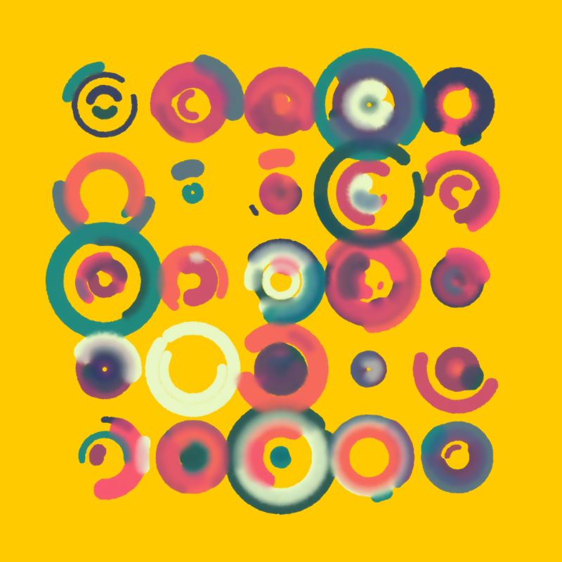 Random arcs, random grid, random palettes. Watch the colors blend together.