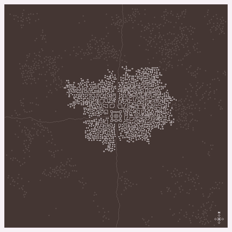 Abstract kingdom depicting a sprawling city clustered around a castle.