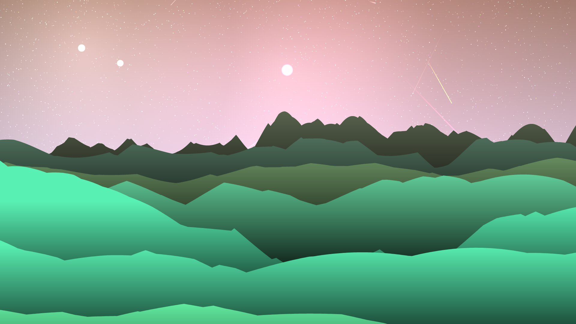 A parallax alien landscape generator featuring mountains, stars, meteors, and suns.