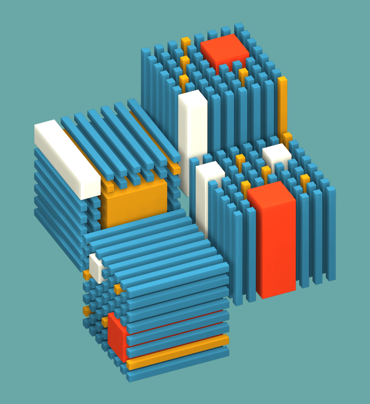 In each output, the four "cubes" are arranged in the same calming, 'zen-like' formation.