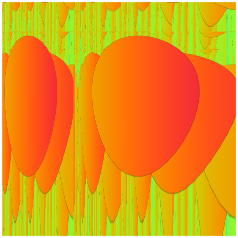 In this piece a shape is scattered and repeated throughout the canvas creating a sense of rhythm. The shape shrinks into the background giving the artwork a sense of 3 dimensional depth. The forms move and shift positions in this constantly evolving work.