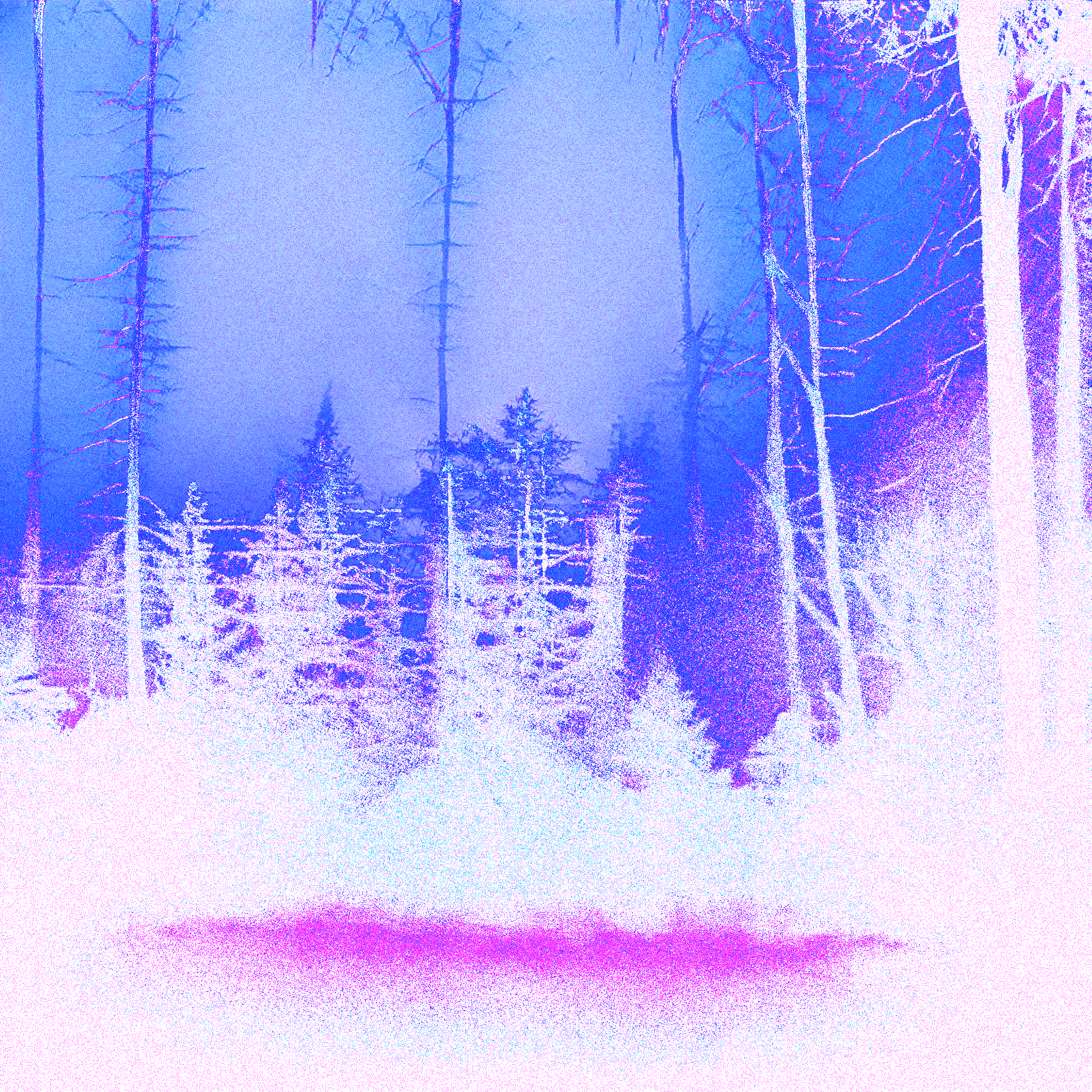 The project has been developed in multiple stages. It started with an inspiration by the Lithuanian landscape and research of the ancient myths and legends. The photography aimed at capturing the mysterious, spanning months and years of different experiences. A custom pre-trained artist’s GAN model was then trained on a collection of several hundred photographs in high resolution. Selected outputs were curated by artist and included as a starting canvas for the next stage. Then, a set of stochastic manipulations were programmed to create alternative narratives through the visual destruction. Fog turns into smoke into burning radioactive forest in an unpredictable manner, guided by the random variables, their boundaries crafted by artist.