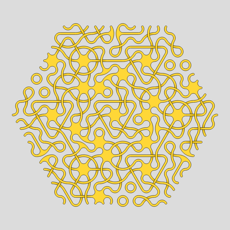 Hexagonal Truchet Tiling with threefold symmetry and custom tile set.