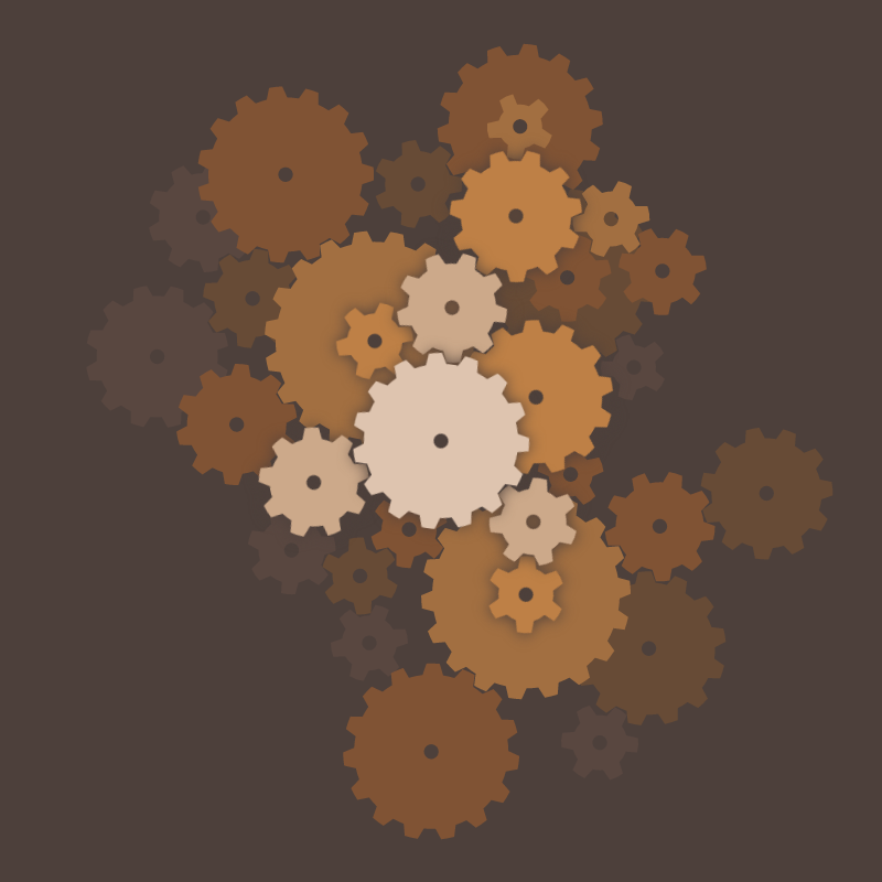 A procedurally generated constellation of gears. Rendered using HTML, SVG and CSS.