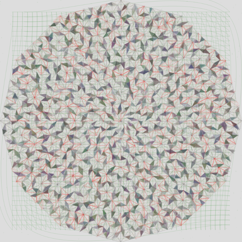 Builds Penrose pattern with triangles in a way a sketch artist might with limited tools