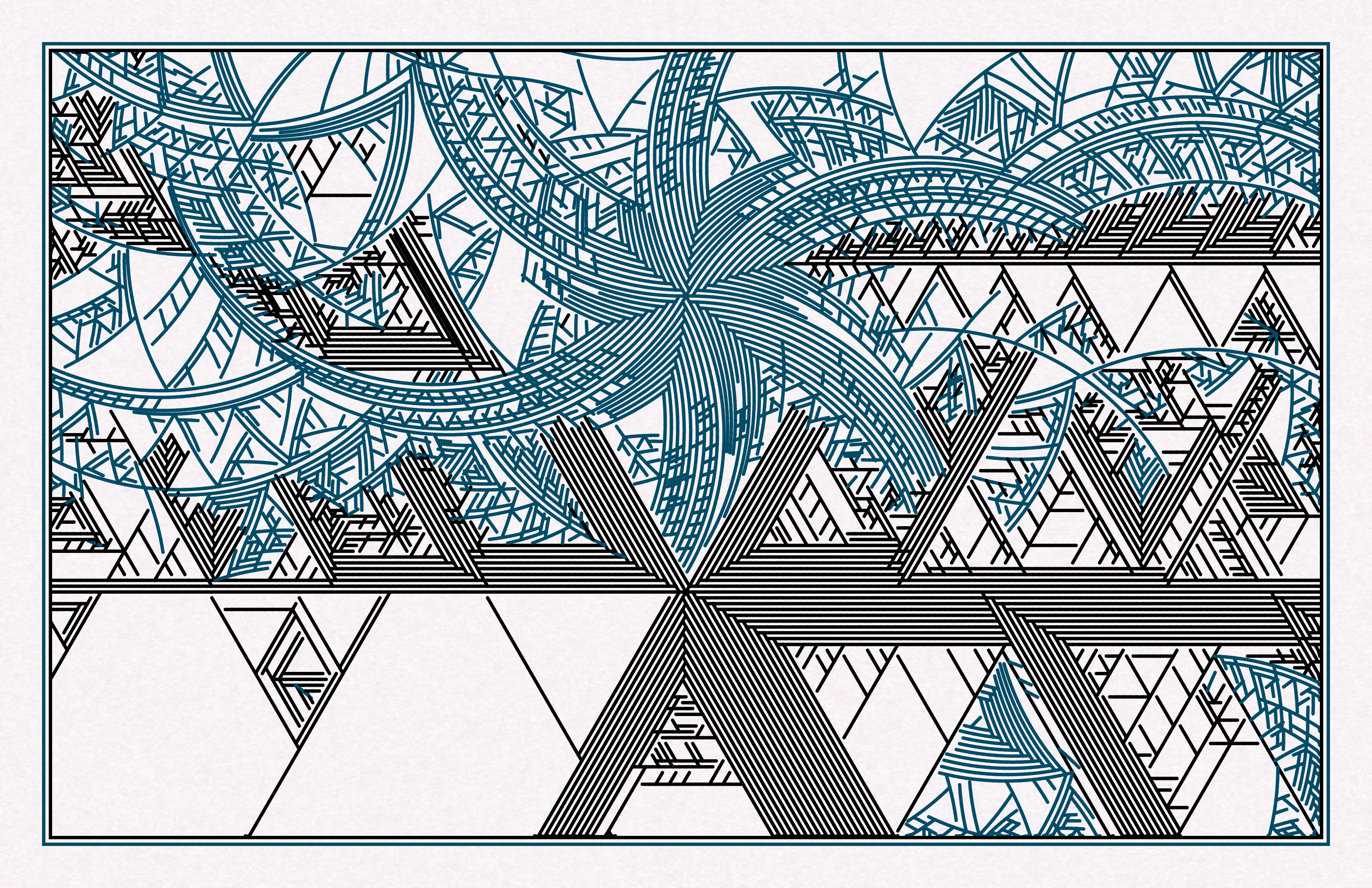 Continued exploration of the algorithm from "Chaospill" with a symmetric two tone style that is plotter friendly. The result can be rotated to whatever orientation works best for your display purposes. The code is presented unminified with comments and will be open sourced soon.